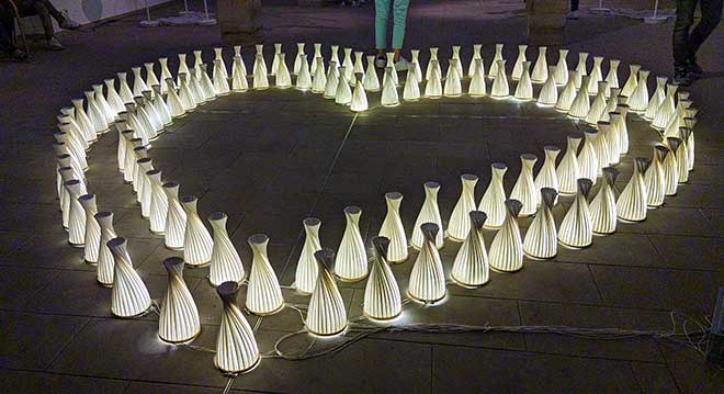 LED-Laternen als Herz aufgestellt