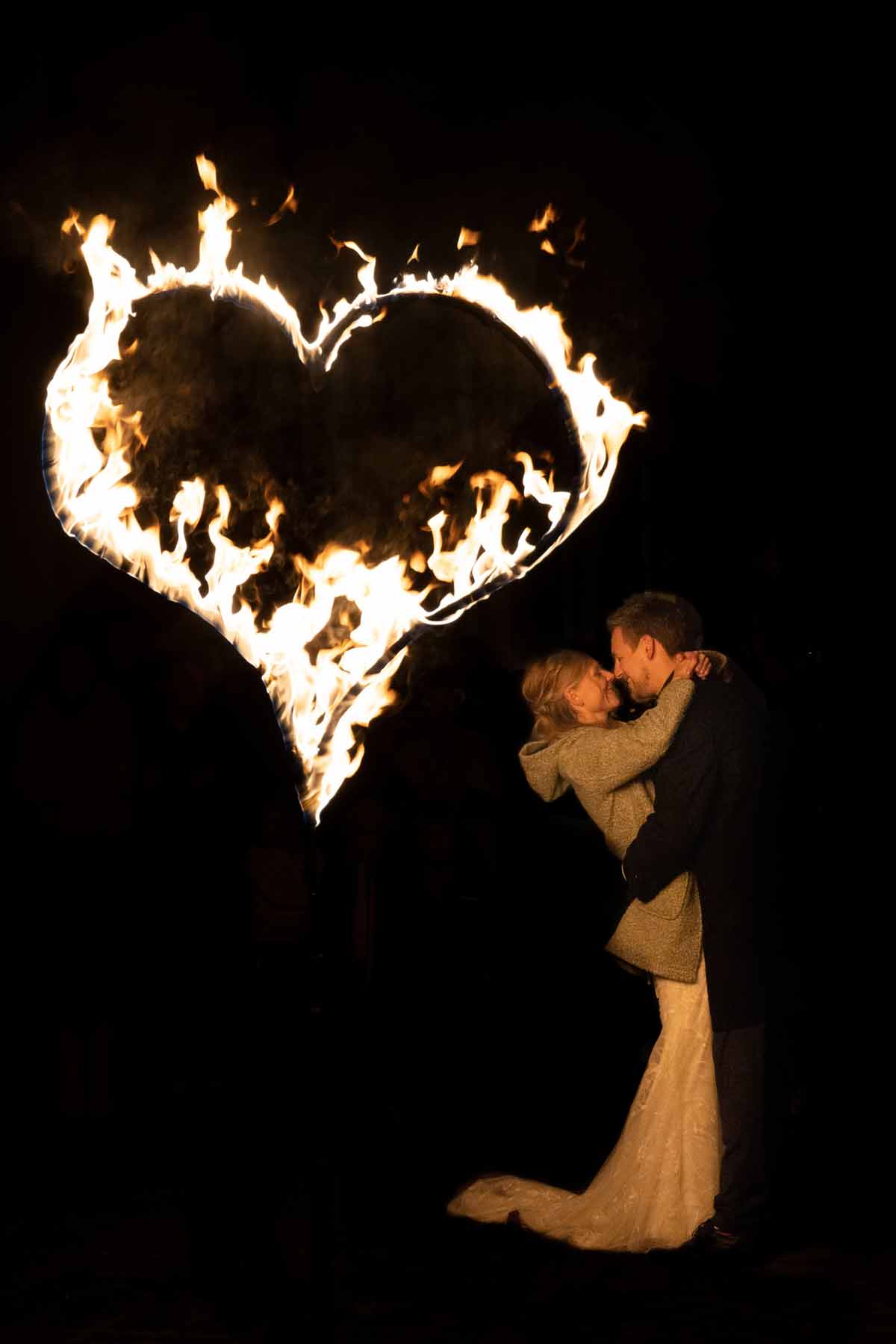 Das Feuerherz ist in jeder meiner Feuershows zur Hochzeit integriert. Diese Kombination schafft einen unvergesslichen und romantischen Höhepunkt der Show. Die Show beinhaltet spektakuläre Feuereffekte, die in dem Feuerherz als Symbol Ihrer Liebe gipfeln.