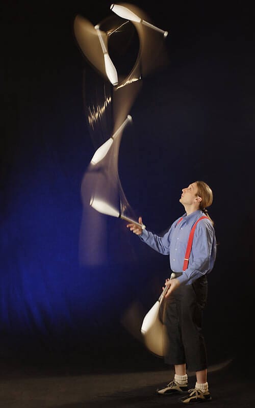 Die Comedyjonglage von Detlef Vogt verbindet hochwertige Jonglage mit modernen Elementen der Comedy.