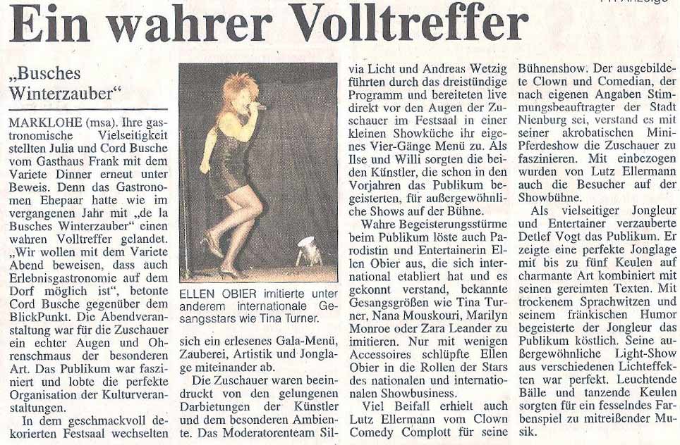 …“Toll, „unglaublich“ und „fantastisch“ lautete am Ende das einhellige Urteil der Zuschauer, die sich mit langanhaltendem Applaus für die brillante Show bedankten….